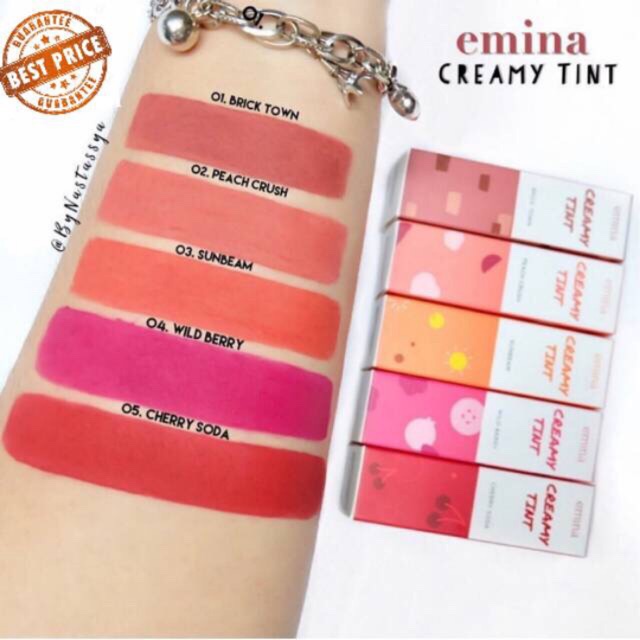 Selain mengerti akan kebutuhan kecantikan dan perawatan kulit konsumen saat ini. Brand emina sendiri yang terkenal sebagai brand kosmetik dengan harga produk terjangkau tetap menjual lip cream dengan harga yang ramah di kantong meski lip cream sedang banyak di cari saat ini. Emina creamytint adalah lip tint dengan tekstur creamy yang halus dan tidak lengket. Emina 5 gr.