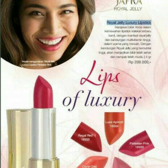 Lipstik jafra terbaru ada beberapa varian lipstik jafra yang umum terkenal yaitu lipstik matte jafra jafra royal jelly luxury lipstik dan jafra full protection lipstik spf 15. Harga lipstik jafra royal jelly terbaru saat ini dibanderol dengan harga sekitar rp. Namun salah satu masalah bibir yang paling banyak dikeluhkan adalah warna bibir yang gelap apalagi bagian pinggir yang cenderung menghitam. Lipstik jafra tergolong memiliki harga yang lumayan tinggi dibanding dengan produk produk lain akan tetapi tetap diburu oleh penggemarnya.