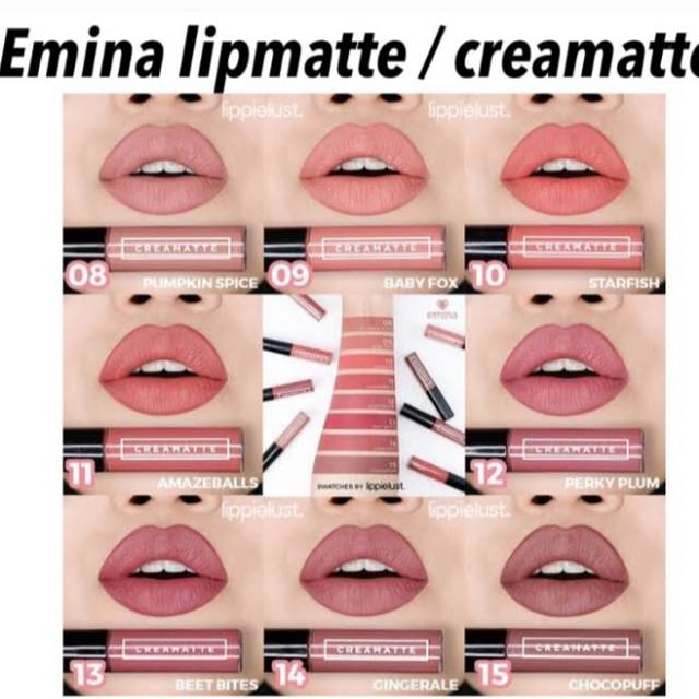 Teksturnya yang soft dan velvety membuat emina creamatte mudah dioleskan pada bibir. Description additional information reviews 0 best mate for your lip emina creamatte adalah liquid lip cream dengan color binding pigment untuk hasil matte dengan warna intens dan tetap halus buildable. Emina creamatte terbaru ini dihadirkan dalam 8 varian warna diantaranya 08 pumpkin spice 09 baby fox 10 star fish 11 amaze balls 12 perky plum 13 beet bites 14 ginger ale dan 15 choco puff. Dengan menggunakan lipstik bibir akan tampak lebih cantik dan seksi sehingga akan menambah rasa percaya diri apalagi warna lipstik yang beraneka ragam yang terdiri dari warna peach warna orange warna pink hingga warna merah dapat disesuaikan dengan mood dan outfit yang kamu kenakan.