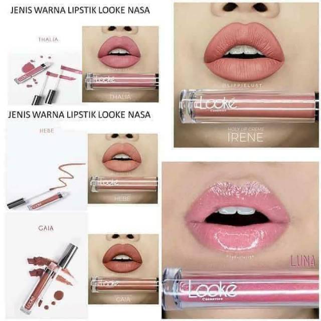 Nasa looke holy lip series looke luna looke cosmetic lipstick luna cair glossy original mencegah bibir kering tidak membuat bibir hitam ken herbal. Lipstik looke lip cream hebe merupakan lip cream premium dari brand kosmetik lokal terbaru yaitu looke cosmetics. Katalog harga produk lipstik matte nasa indonesia indonesia. Lipstik looke adalah satu diantara banyak merk lipstik yang berasal dari indonesia.