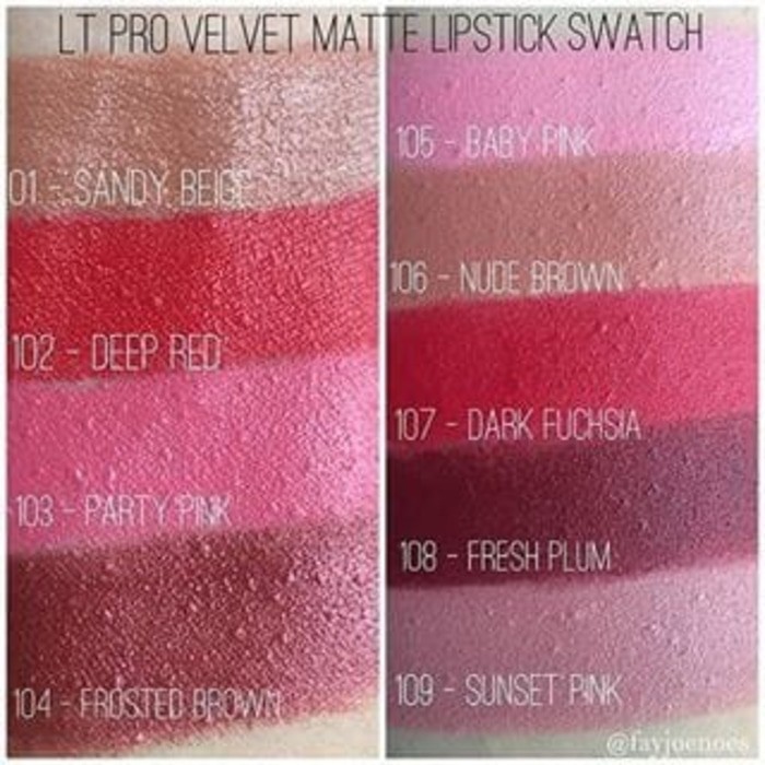 Lipstik lt pro velvet. Ulaskan pada atas dan bawah bibir suitable for. Ethylhexyl methoxycinnamate to prevent darkening skin. Selain variannya banyak shades warna yang ditawarkan juga beragam. Lt pro menggabungkan teknologi termutakhir dengan bahan bahan berkualitas tinggi sehingga terciptalah rangkaian produk makeup dengan kualitas terbaik.