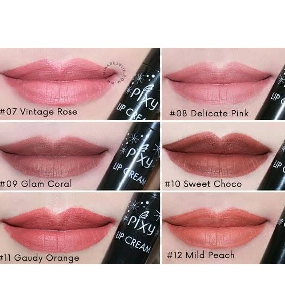 Lip cream pixy nude series 09 glam coral 3. Lipstik ini memiliki warna pink yang soft dan sangat ringan digunakan. Hi barudaaak yang udah nungguin swatches pixy warna baru sok atuh ditonton yaaaah warna yang di swatch. 07 vintage rose 08 delicate pink 09 glam orange 10 sweet choco 11 gaudy orange 12 mild.