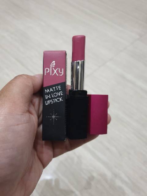 Hallo bellosquad apa kabar. Teksturnya lembut dan ringan di bibir. Lipstik pixy matte ini merupakan warna pink dengan paduan warna merah terang. Pixy matte in love lipstick ini dibalut dengan tube berbentuk balok prisma segiempat.