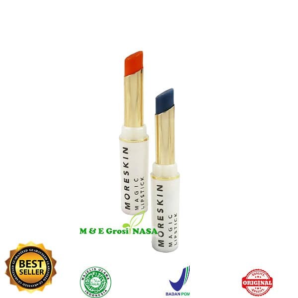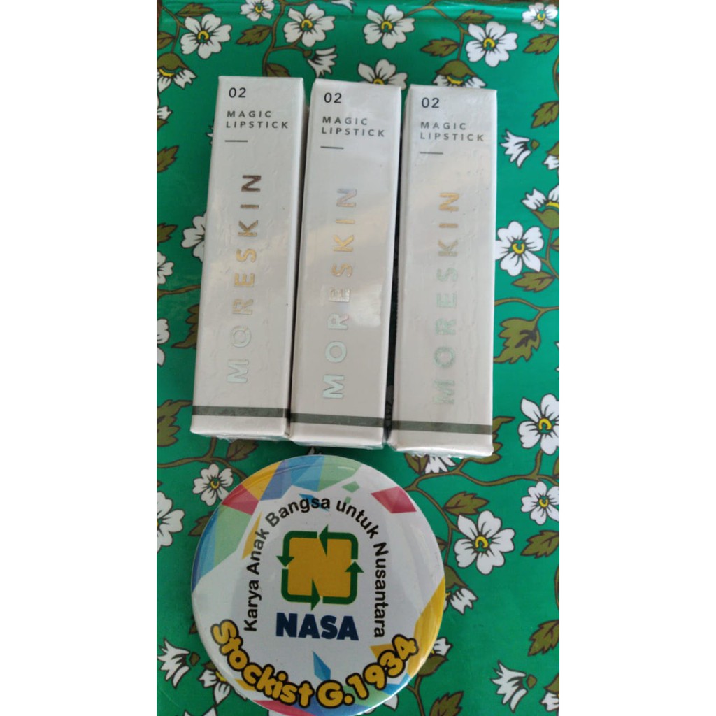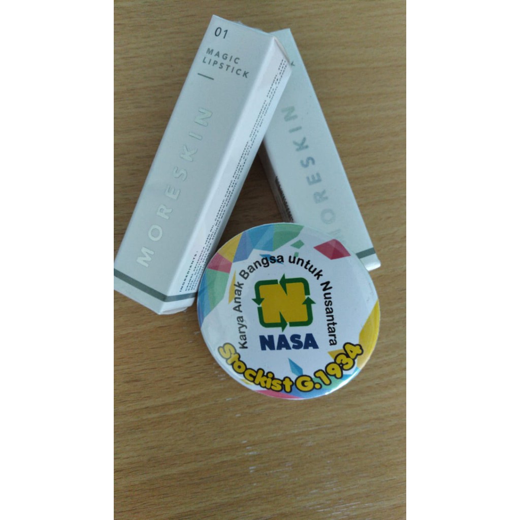 Moreskin moisturizing lipstick merupakan produk kosmetik terbaru dari nasa berupa lipstik dengan ramuan yang memiliki kandungan vitamin dan moisturizer yang mampu mempercantik sekaligus melembabkan bibir anda. Magic lipstick 01 akan berubah menjadi merah dengan menyesuaikan ph bibir anda. Pom na 18191307457 netto 4 gram. Moreskin magic lipstick merupakan produk lipstik terbaru pt natural nusantara yang dapat mencerahkan senyuman dan membantu dalam mendefinisikan warna bibir sesuai ph bibir anda.