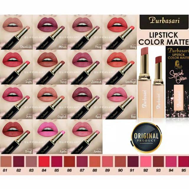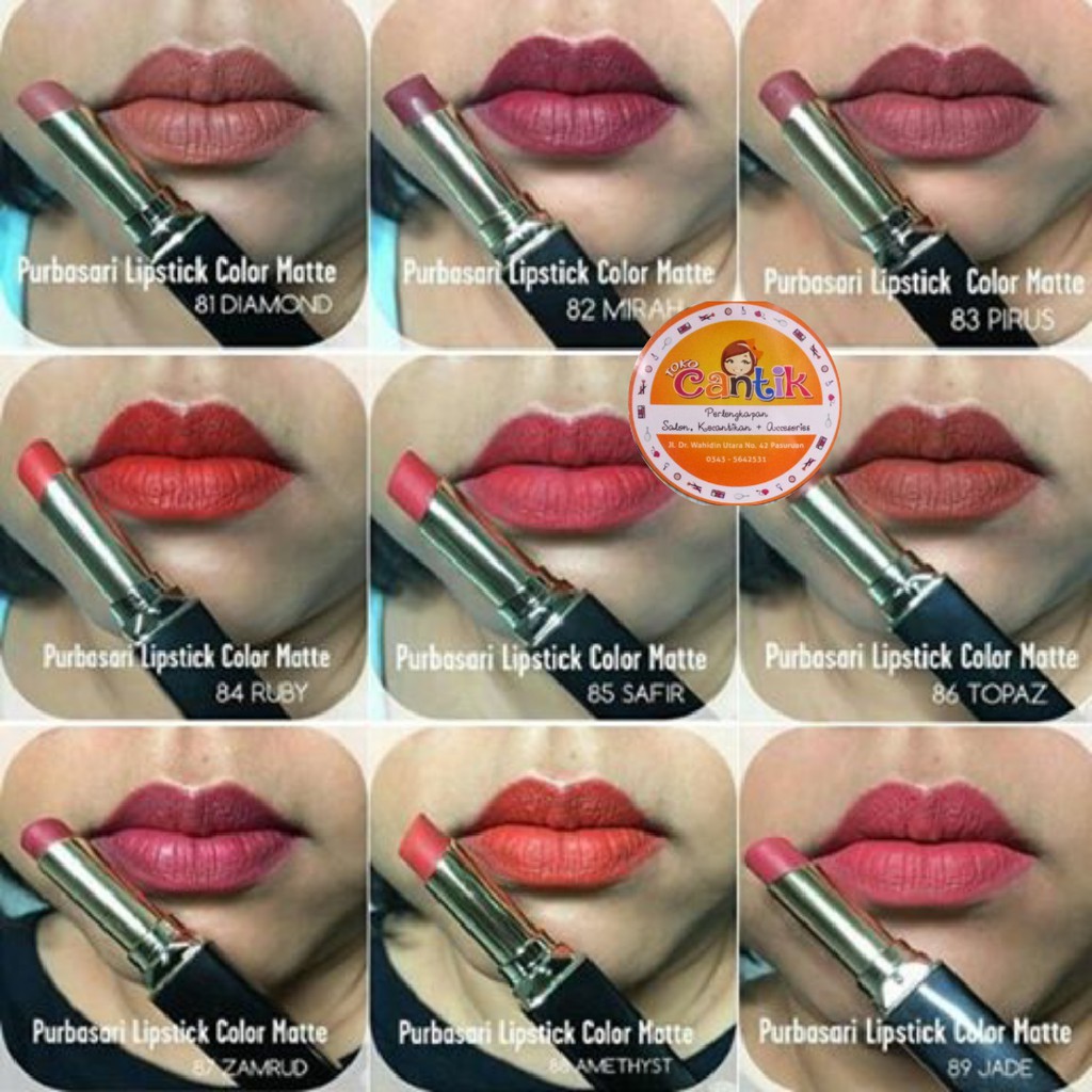 Seperti judulnya kali ini total ada 15 lipstik yang selalu nge hits dari purbasari yaitu purbasari lipstick color matte no. Oh iya sebelumnya aku udah pernah posting tentang 5 shade lama yang sempet jadi favorit. Warna yang gw pilih ini adalah no 81 diamond dan no 83 pirus. Tapi tidak kalau lo punya bibir pecah pecah.