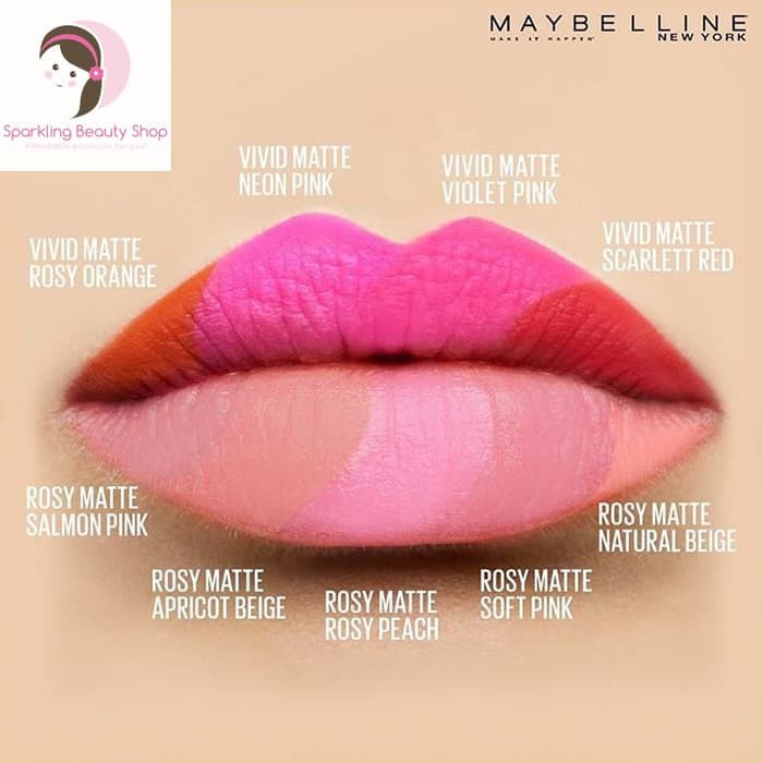 Lipstik maybelline merupakan salah satu produk makeup bibir dari merek maybelline. Inovasi dari maybelline new york liquid lipstick dengan hasil matte tapi melembapkan. Di bagian bawah tersebut terdapat keterangan shade yang disesuaikan dengan warna lipstik di dalamnya. Maybelline vivid matte lipstick by colorsensational.