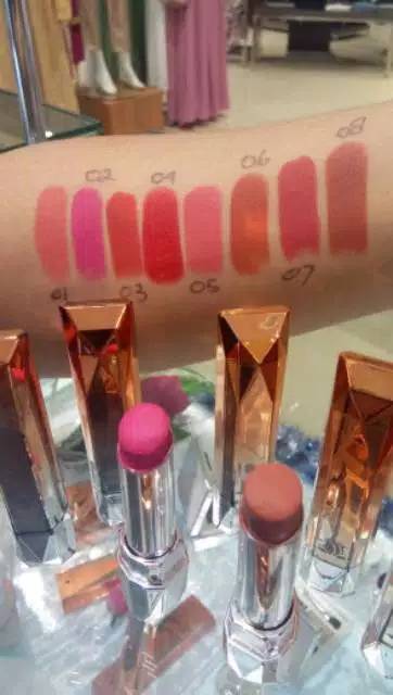 Warna lipstik la tulipe ini didominasi warna coklat dan oranye. Untuk kamu yang memiliki bibir kering tetapi ingin tetap menggunakan lipstik matte coba deh lipstik dari la tulipe cosmetique. Warna warna lipstik terbaru la tulipe untuk wanita. Namun warna ungu yang terdapat pada lipstik matte 87 zamrud terlihat lebih bold.