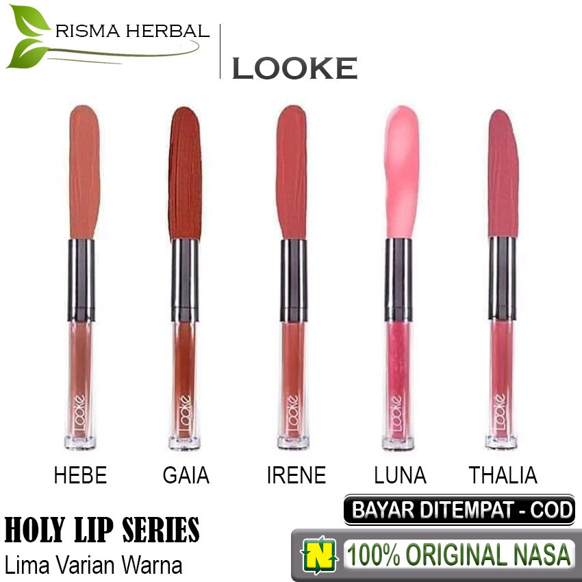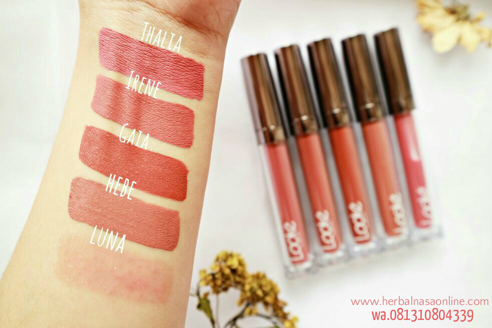 Harga lipstik looke tampil dengan bibir yang memiliki warna cantik akan membuat diri sendiri jatuh cinta. Holy lip cream hera hadir dengan warna raspberry wine yang cocok digunakan untuk semua warna kulit terinspirasi dari ratu para dewa hera lip creme ini memberi tampilan terlihat lebih tegas dan anggun secara bersamaan. Apalagi kaum adam yang melihatnya pastinya akan sedikit hela nafas untuk melihat keindahan bibir anda yang memiliki warna yang indah. Warna shades looke lip cream nasa hadir dalam warna warna yang hangat yang sesuai dengan tone kulit wanita asia khususnya indonesia.