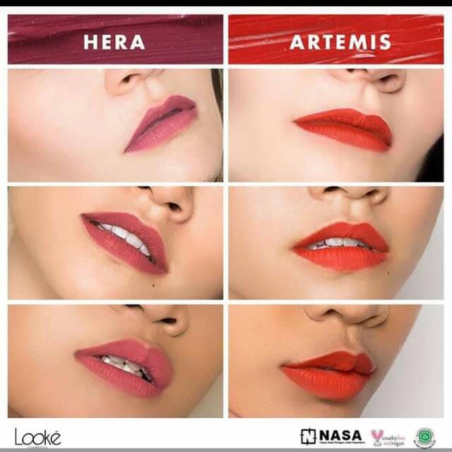 Uniknya nama shade dari setiap lipstick terinspirasi dari nama nama dewi yunani lho seperti hebe thalia gaia irene dan luna. Formula looke lip cream nasa. Nasa sendiri adalah perusahaan yang bergerak dibidang. Lipstik looke nasa merupakan lip cream premium dari brand kosmetik lokal terbaru yaitu looke cosmetics.