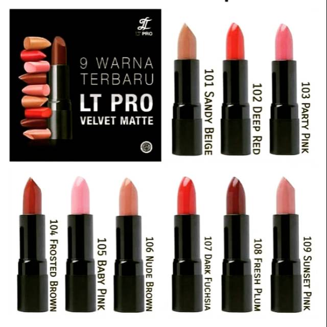 Diantaranya adalah lipstik lt pro velvet 06 metallic no 7 pallet lt pro matte velvet matte palette no 12 no 4 no 3 velvet glossy long lasting matte lip cream dan lain sebagainya.