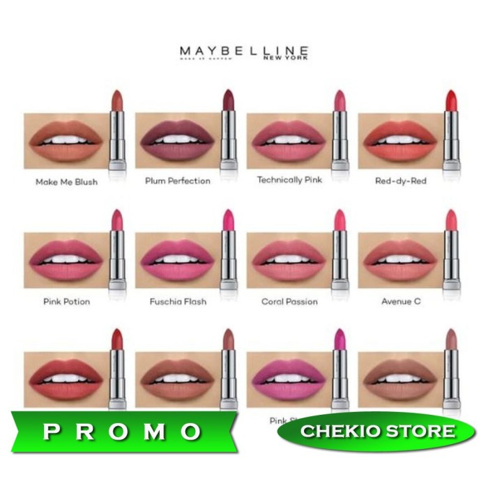 Shades tersebut up to date almond pink avenue c barely there cherry chic coral passion fuchsia flash. Sangat smooth ketika pengaplikasian. Maybelline color sensational powder matte lipstick makeup merupaka lipstik dengan finish matte dengan kandungan powder pigments yang memberikan hasil matte hingga 2x lebih intens sehingga. Ada 26 varian warna yang cantik yang bisa kamu pilih.