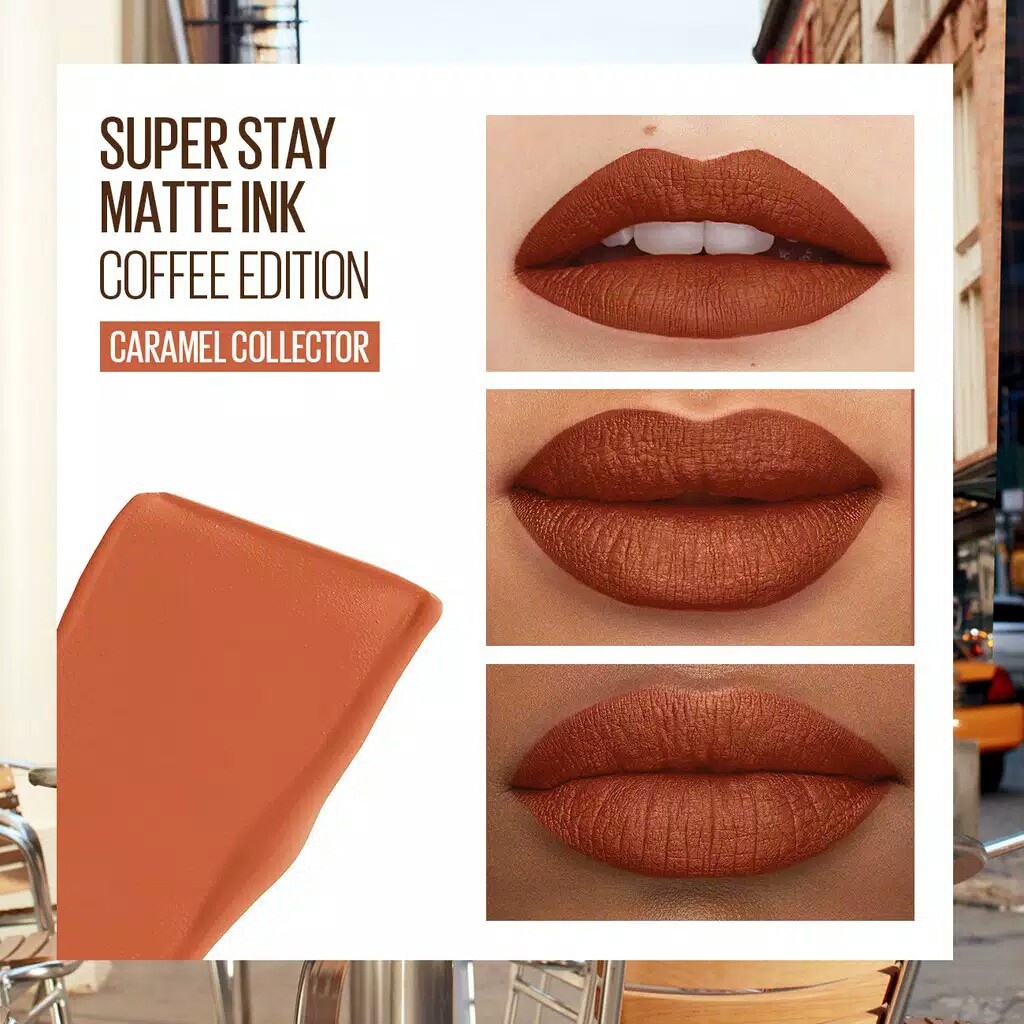 Maybelline hadirkan superstay matte ink liquid lipstik tahan lama hingga 16 jam dengan warna intens atau pigmented. Bibir menjadi lembap dan bertahan selama 5 jam dengan mengoleskannya beberapa kali untuk hasil akhir yang indah. Maybelline superstay coffee menawarkan enam pilihan warna dan aroma yang terinspirasi dari berbagai jenis kopi sehingga yang memakainya serasa minum kopi seharian.
