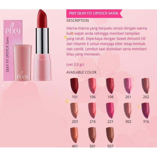 Pixy silky fit lipstick. Oke review dari box nya dulu seperti make up pixy yang lain. How is your day. Yg aku punya itu 507 autumn apricot seriusan deh range warna lipstick pixy ini banyak gak cuma merah sm pink doang jd buat yah yg mudamudi monggoh nglirik pixy kalo baru pengen nyobanyoba gitu.